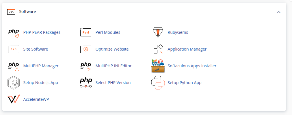 Di dashboard cPanel, cariSoftaculous Apps Installer di seksi Software, atau ketik “Softaculous” di kolom pencarian. Klik ikonnya untuk membuka.
