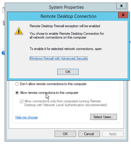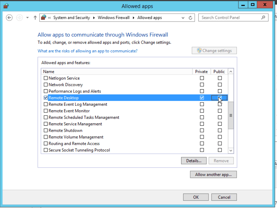 - Pastikan opsi Remote Desktop sudah dicentang untuk Private dan Public.