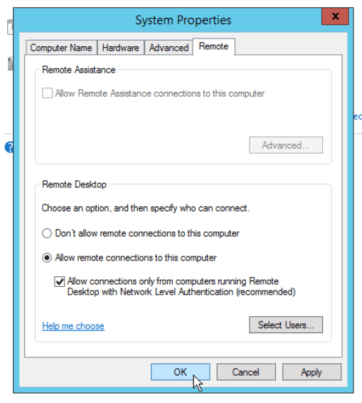 Secara default, pengguna dengan akses administrator dapat menggunakan RDP. Jika Anda ingin memberikan akses RDP ke pengguna lain, klik Select users that can remotely access this PC, lalu tambahkan nama pengguna yang diinginkan.